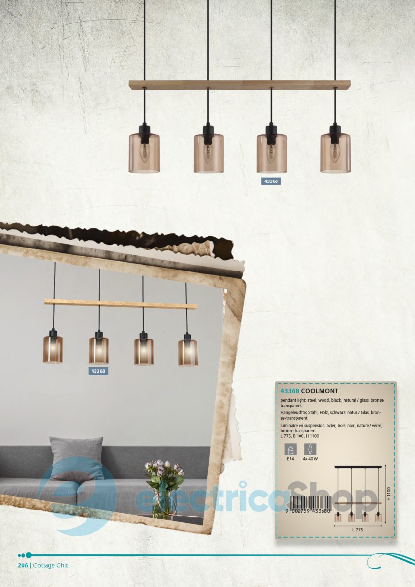 Подвесной светильник COOLMONT 43368 австрийского бренда EGLO будет отлично смотреться в современном интерьере, дополнит дизайн любого помещения. Изготовлен из стали и дерева, плафоны из стекла.