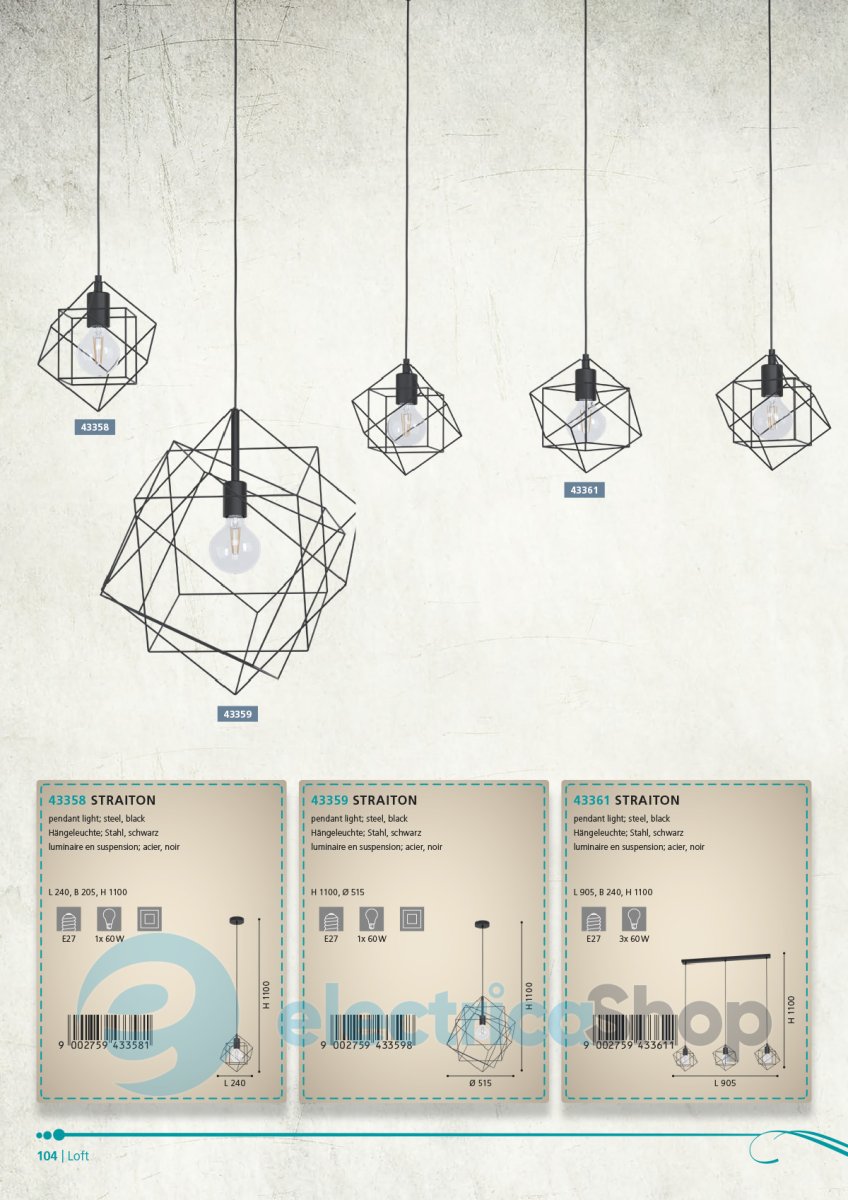 Подвесной светильник Eglo STRAITON 43359 будет отлично смотреться в современном интерьере, дополнит дизайн любого помещения. Изготовлен из стали в черном цвете.