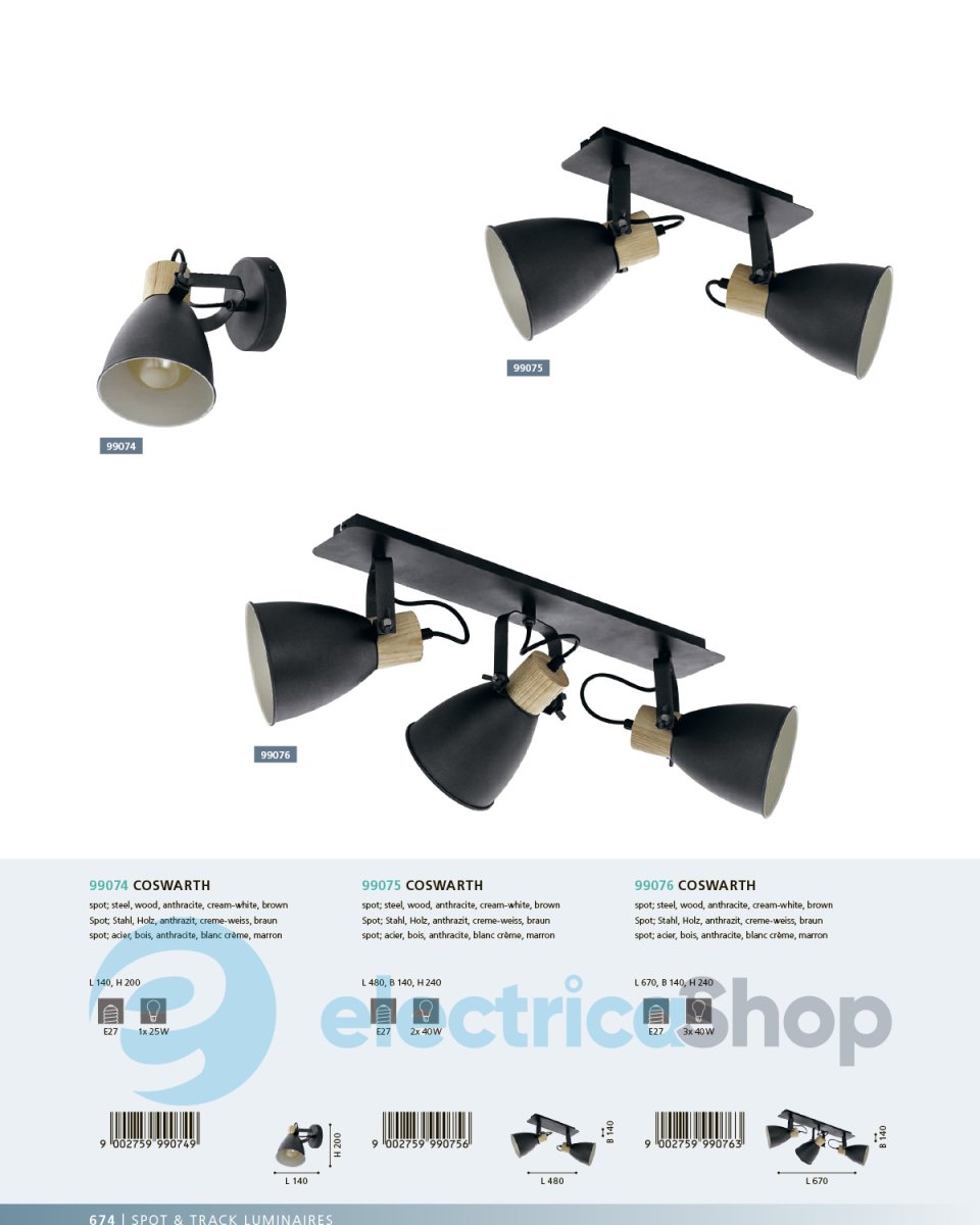 Светильник-спот Eglo COSWARTH 901174 станет трендовым решением для оформления разнообразным пространств. Изготовлен из стали и дерева, прекрасно впишется в современный интерьер и подчеркнет дизайн.