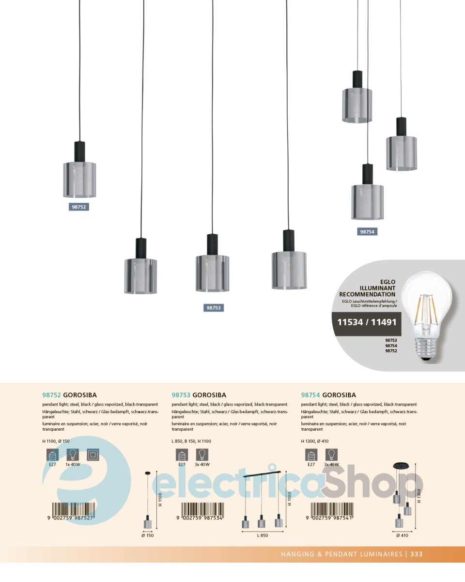 Люстра GOROSIBA 98753 австрийского бренда EGLO будет отлично смотреться в современном интерьере, дополнит дизайн любого помещения. Изготовлена из стали, плафоны стеклянные.