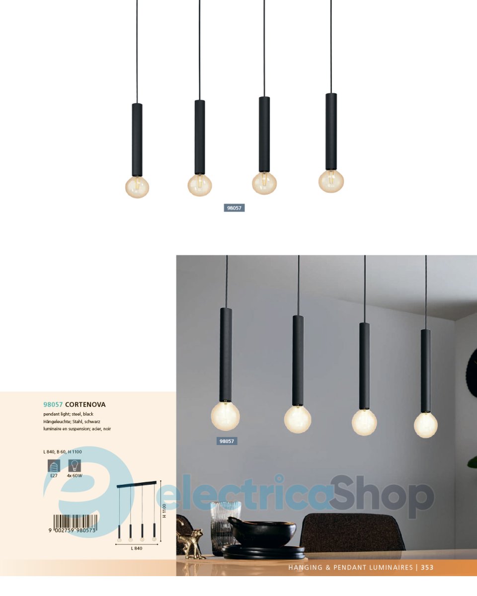 Люстра CORTENOVA 98057 австрийского бренда EGLO будет отлично смотреться в современном интерьере, дополнит дизайн любого помещения. Изготовлена из стали, покрытие черного цвета.