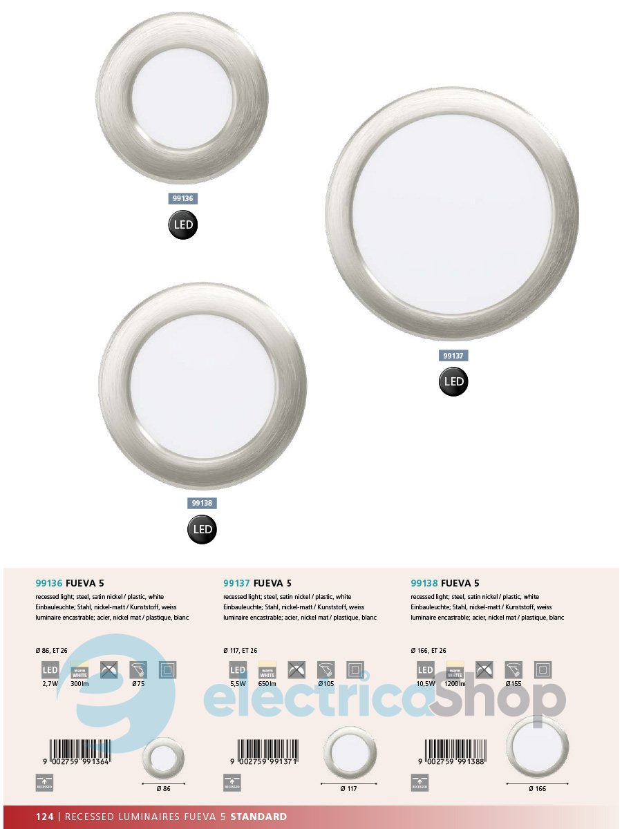 Встраиваемый точечный светильник Eglo FUEVA 5 99137 из стильной коллекции Эгло будет здорово смотреться в интерьере, оформленном в современном стиле. Осветительный прибор выполнен из стали и пластика.
