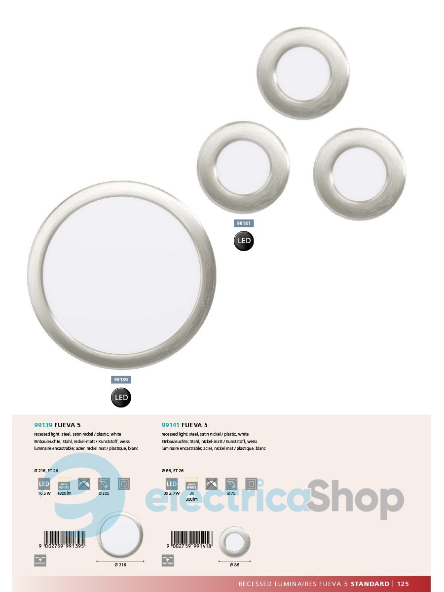 Встраиваемый точечный светильник Eglo FUEVA 5 99141 из стильной коллекции Эгло будет здорово смотреться в интерьере, оформленном в современном стиле. Осветительный прибор выполнен из стали и пластика.