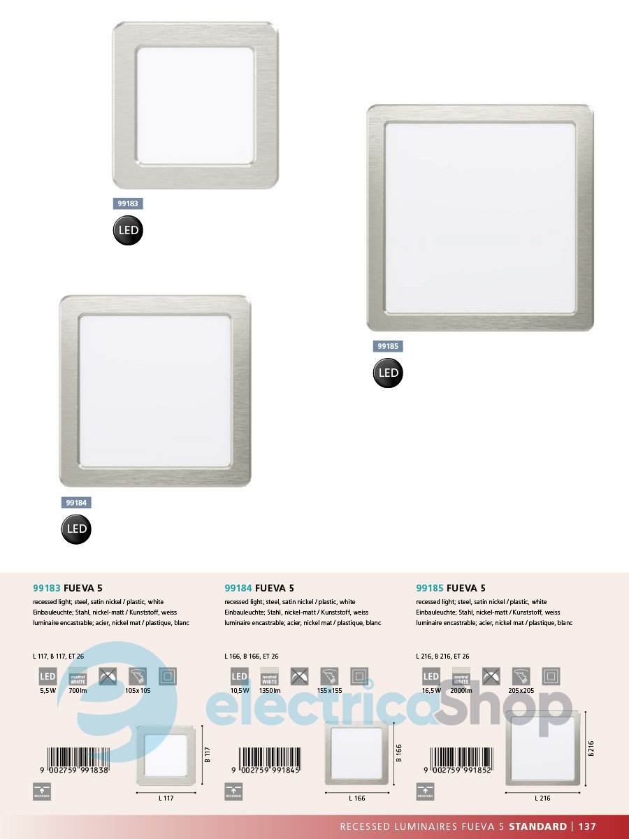 Встраиваемый точечный светильник Eglo FUEVA 5 99183 из стильной коллекции Эгло будет здорово смотреться в интерьере, оформленном в современном стиле. Осветительный прибор выполнен из стали и пластика.