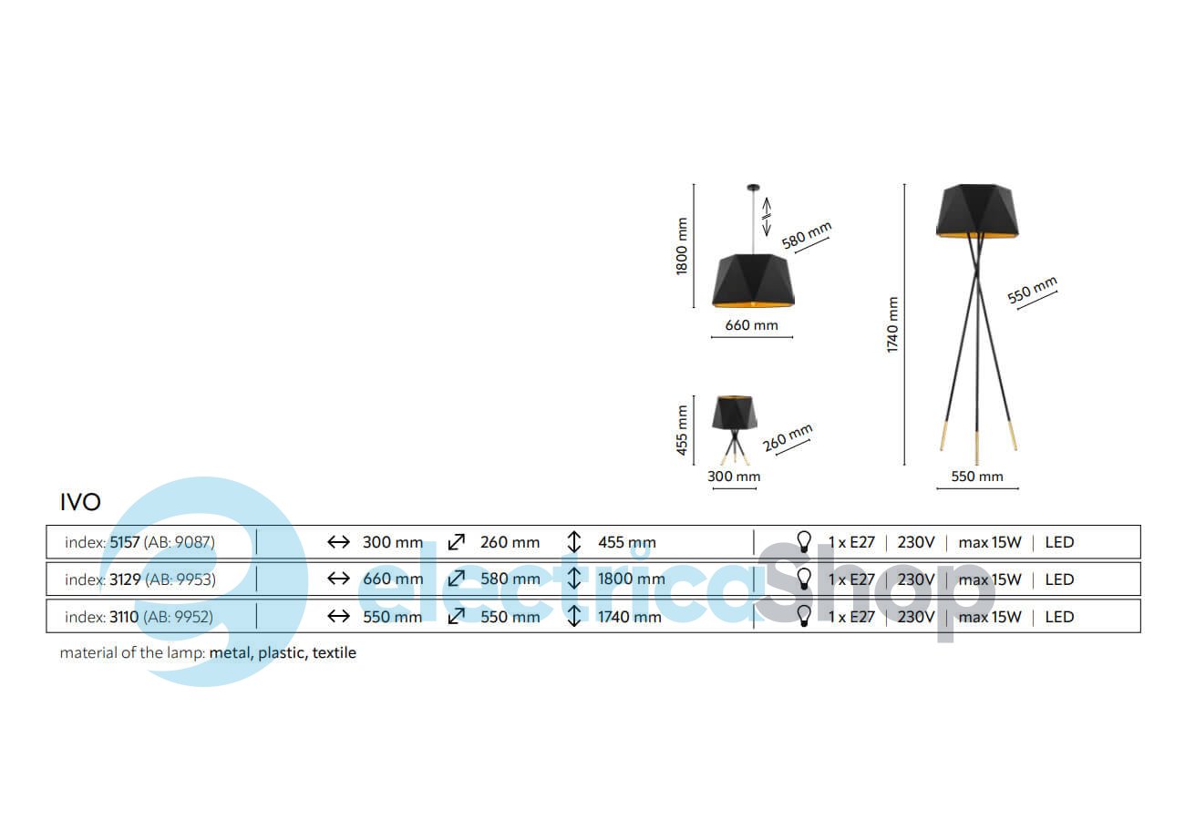 - Материал плафонов: Ткань