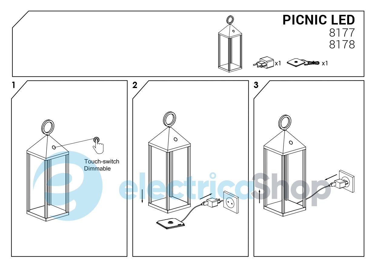 - Функции: Функция диммирования, USB-разъем, С аккумулятором, Сенсорный выключатель