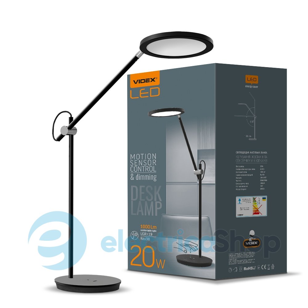 Лампа имеет сенсорный выключатель. Конструкция плафона позволяет регулировать направление света. Лампа имеет комфортный свет, что оставляет меньше бликов на мониторах компьютеров, других поверхностях, при этом глаза меньше устают.