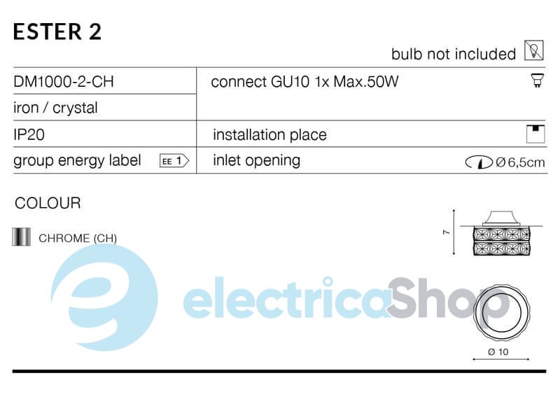 Точечный светильник Azzardo Ester 2 AZ4176 из серии Exclusive downlights будет хорошо смотреться в классических интерьерах, например, в сочетании с хрустальными люстрами. Выполнен из металла и декорирован хрусталиками.