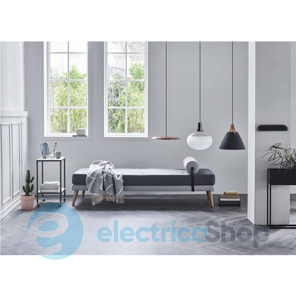 Светильник изготовлен в современном скандинавском стиле, сочетание элементов из кожи, металла и стекла делают предмет освещения незаменимой частью современного интерьера. В комплект входит 2 ремешка черного и коричневого цвета. Используется с LED-лампами.