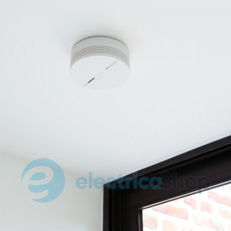 Датчик дыма компактный и удобный в установке. Не стоит беспокоиться о повреждении проводки при монтаже, просто поместите беспроводной блок на поверхность.