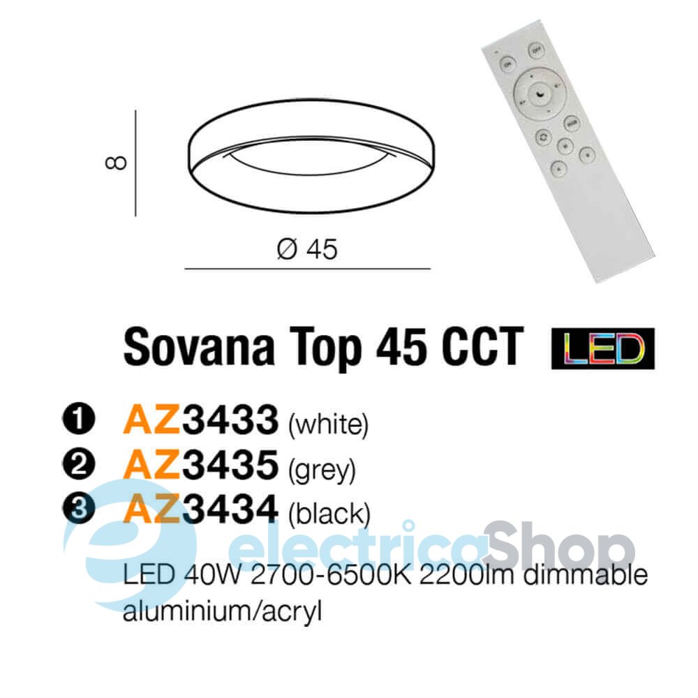 Светильник Azzardo Sovana AZ3435 будет отлично смотреться в современных интерьерах, создаст красивые световые акценты в любом помещении. Изготовлен из качественных материалов – алюминия и акрила. Интенсивность света можно диммировать при помощи пульта ДУ.
