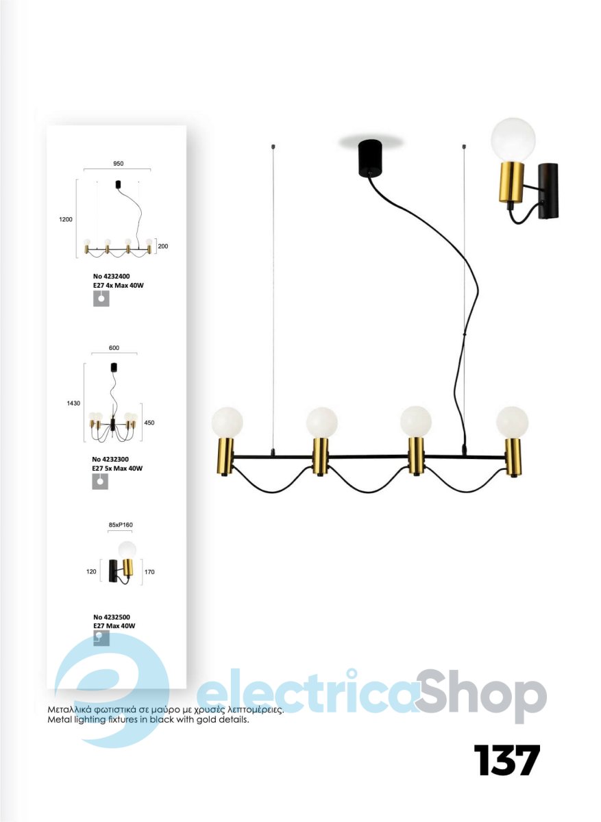 Люстра Viokef VOLTER 4232300 будет отлично смотреться в современном интерьере, дополнит дизайн любого помещения и придаст декоративные акценты.