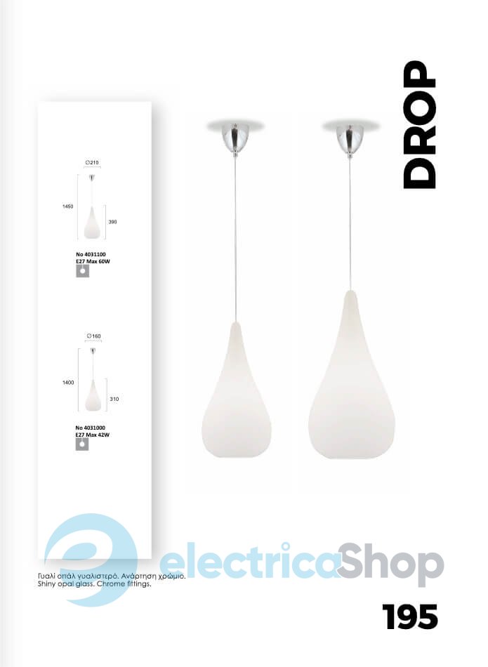 Люстра Viokef DROP OPAL 4031100 будет отлично смотреться в современном интерьере, дополнит дизайн любого помещения и придаст декоративные акценты.