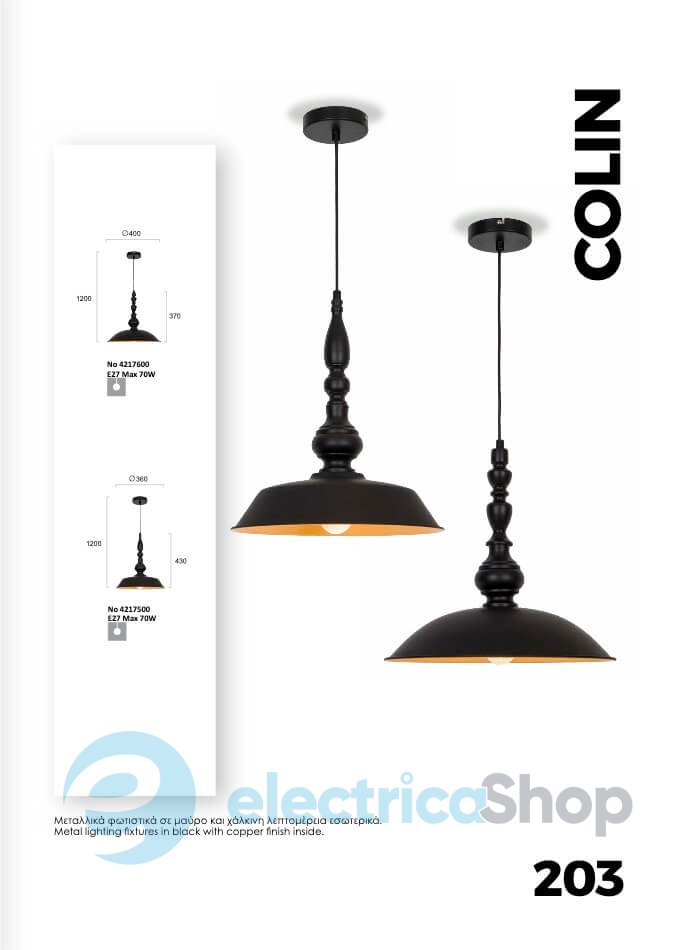 - Цвет плафонов: Медь, Черный