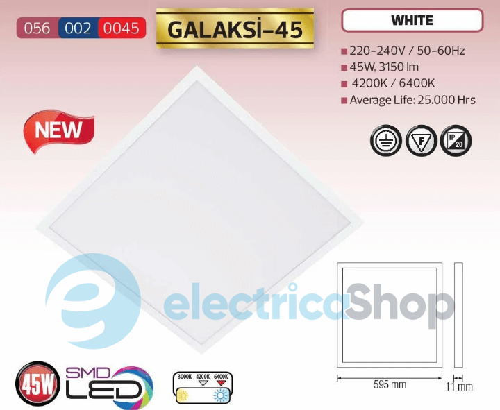 Светодиодная панель Horoz Galaksi-45 056-002-0045-020 – это отличное современное решение для жилых и общественных пространств, офисов, коммерческих помещений. Врезной светильник изготовлен из металла и пластика, предназначен для установки в потолочные конструкции.