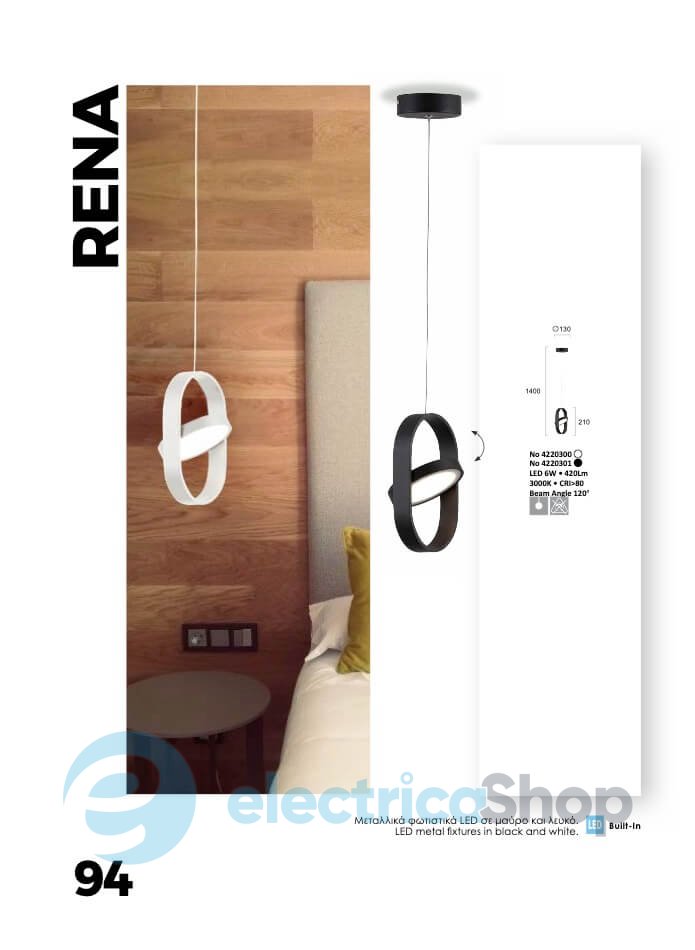 Люстра Viokef RENA 4220301 будет отлично смотреться в современном интерьере, дополнит дизайн любого помещения и придаст декоративные акценты.