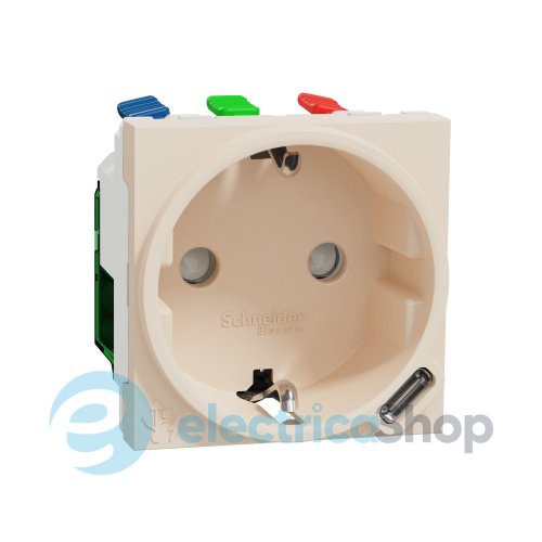 Комбинированная розетка с одним выходом электрической розетки с заземляющим контактом и с одним выходом USB type C.