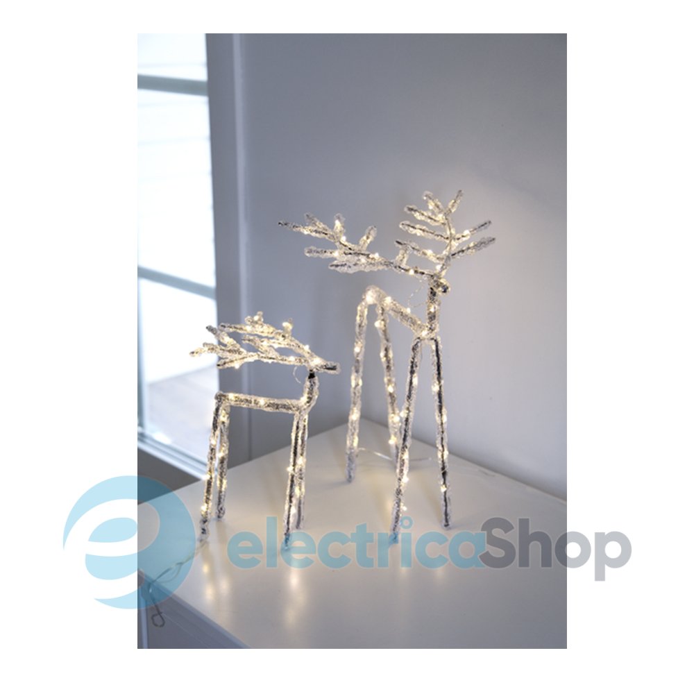 Фигурка в форме оленя станет хорошим дополнением к группе новогодних украшений. Её можно разместить под ёлкой, на подоконнике, в детской комнате или прихожей. LED декор хорошо сочетается с современным пространством, он не перегружен деталями, имеет компактные размеры и встроенный таймер. Таймер работает 6 часов, после делает перерыв 18 часов и перезапускает изделие.