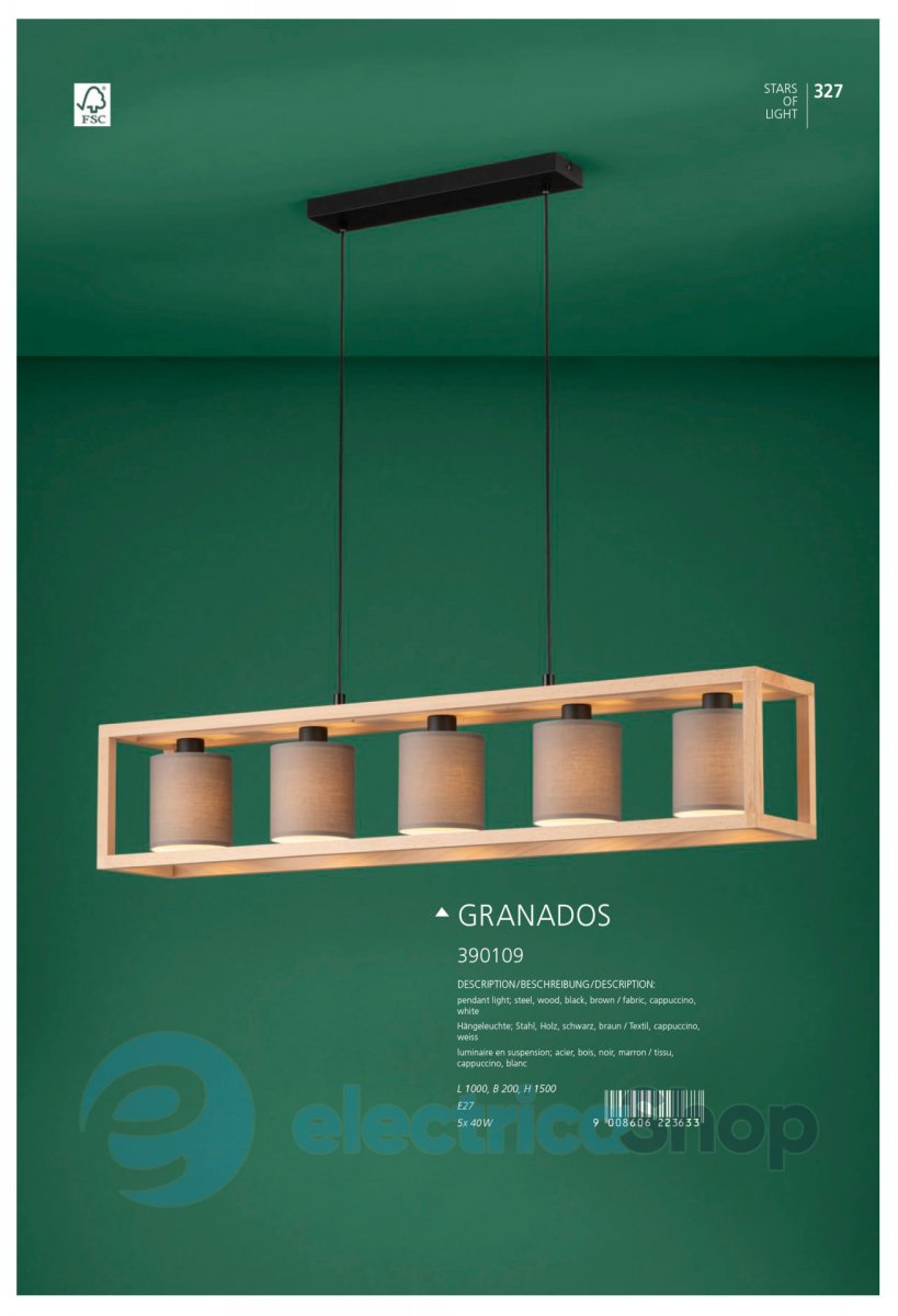 Подвесной светильник GRANADOS 390109 австрийского бренда EGLO будет отлично смотреться в современном интерьере, дополнит дизайн любого помещения и придаст декоративные акценты.