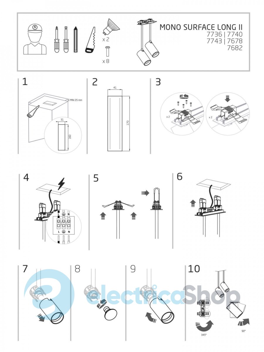 Светильник-спот Nowodvorski MONO LONG II SURFACE 7743 будет хорошо смотреться как в жилых, так и в общественных помещениях. Универсальный дизайн идеально подойдет для современных интерьеров.