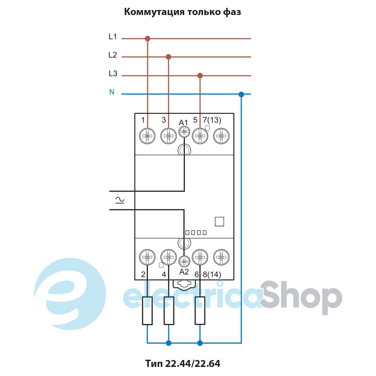 Модульный контактор 22.44.0.230.4710 Finder снабжен:- Переключатель