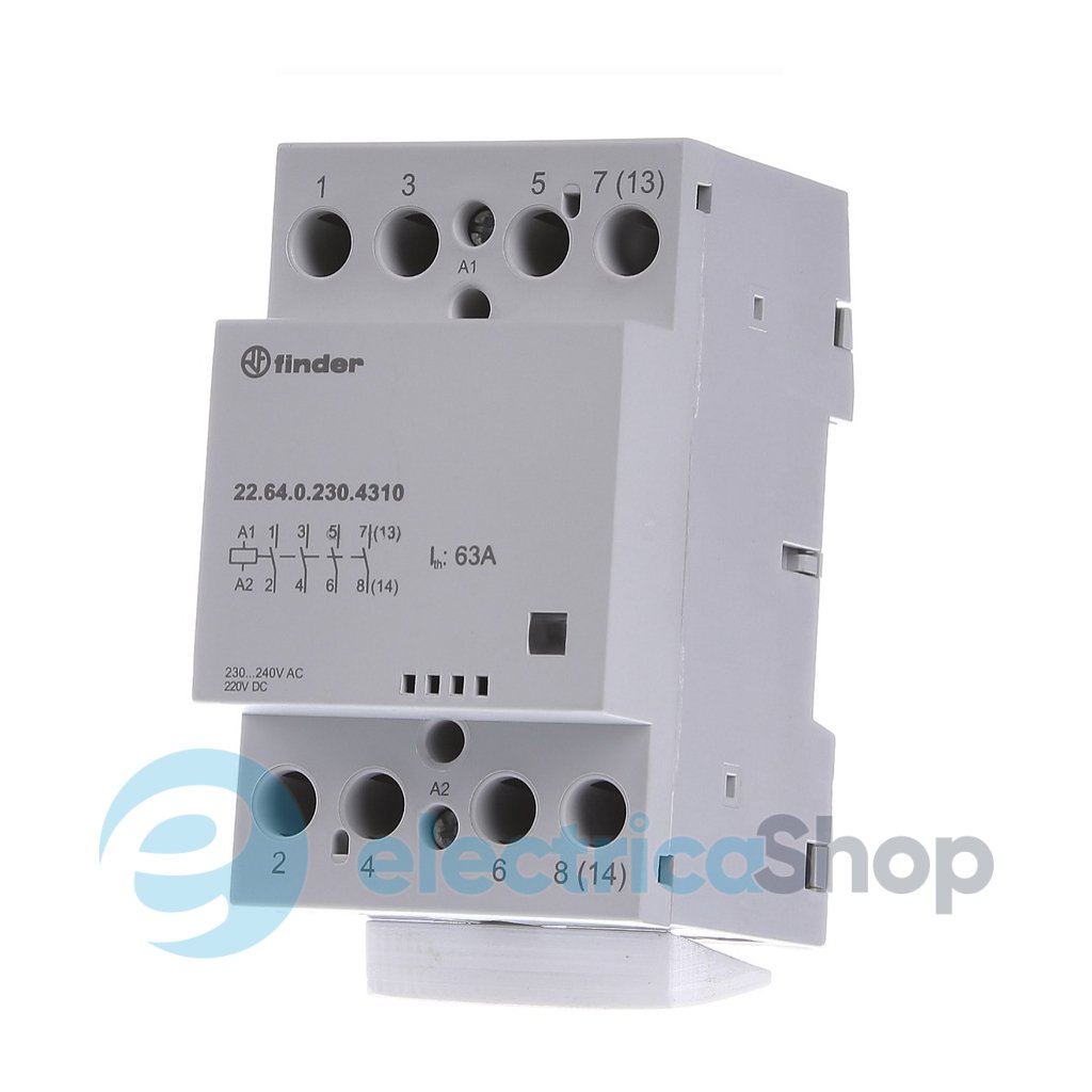 Модульный контактор 63 A - 4 полюсный с каталожным номером 22.64.0.230.4310 Finder имеет следующие основные показатели: