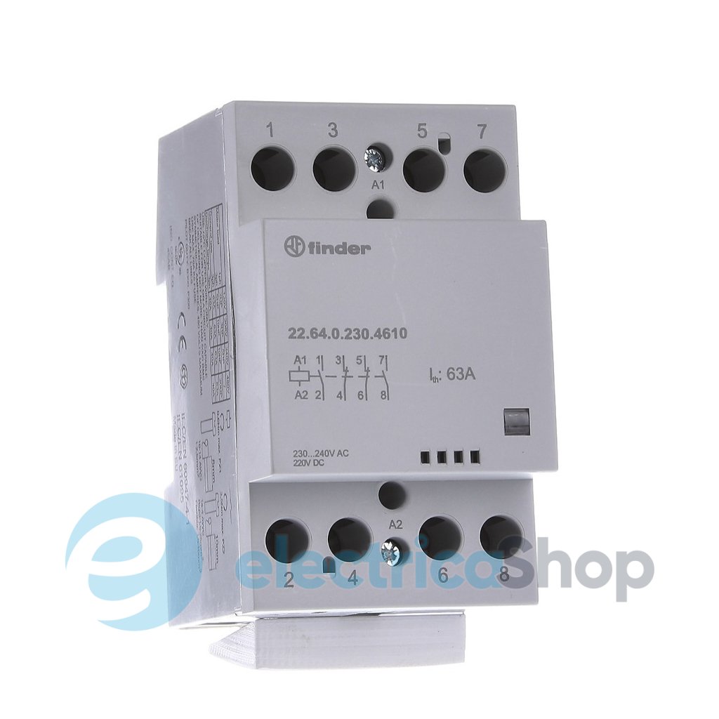 Модульный контактор 63 A - 4 полюсный с каталожным номером 22.64.0.230.4610 Finder имеет следующие основные показатели: