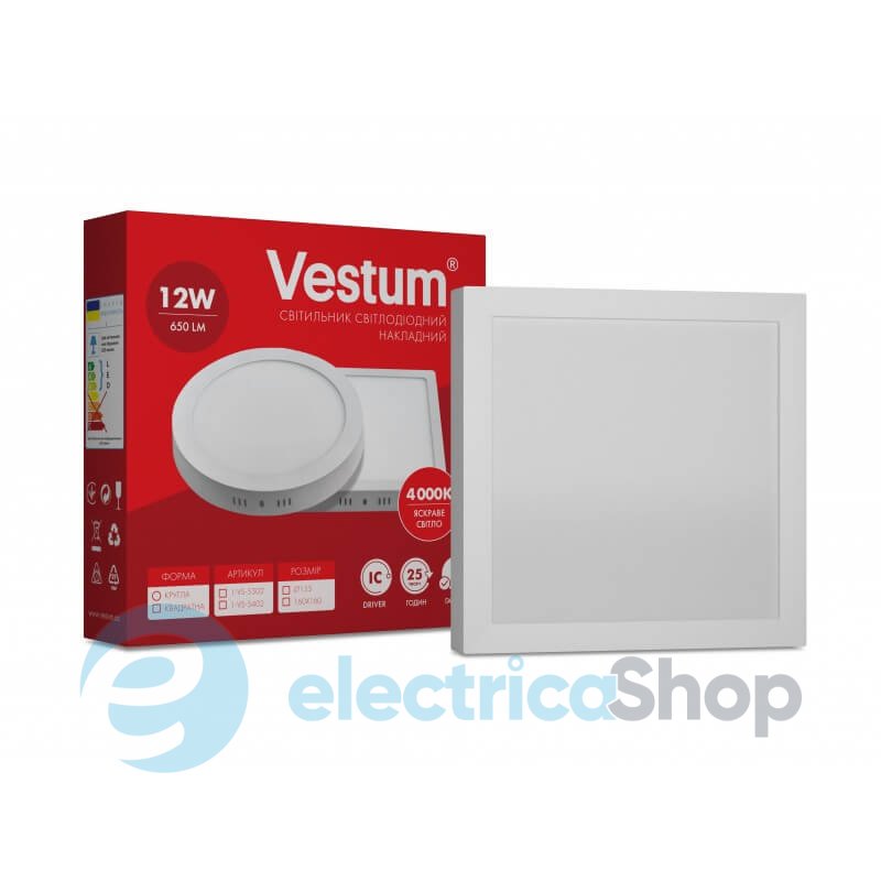 Светодиодный накладной светильник 1-VS-5402 Vestum мощностью 12W. Световой поток изделия составляет 650 люмен. Данная модель стабильно работает в диапазоне напряжения 175-265V на протяжении 25 000 часов. Корпус изделия изготовлен из пластика и алюминия. Официальная гарантия от производителя – 2 года. Светодиодный светильник Vestum – это надежное освещение для дома и офиса.