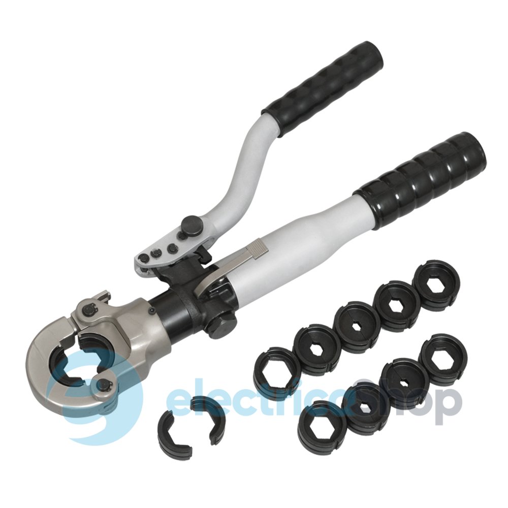 Гидравлические прессы позволяют создавать механические соединения типа кабельная жила-гильза или кабельная жила-наконечник с помощью механической опрессовки. Изделие снабжено сменными матрицами, предназначенными для различных сечений жил.