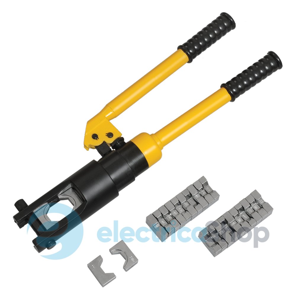 Гидравлические прессы позволяют создавать механические соединения типа кабельная жила-гильза или кабельная жила-наконечник с помощью механической опрессовки. Изделие снабжено сменными матрицами, предназначенными для различных сечений жил.