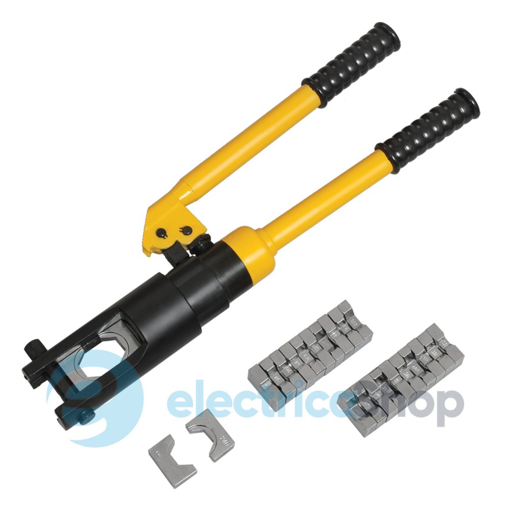 Гидравлические прессы позволяют создавать механические соединения типа кабельная жила-гильза или кабельная жила-наконечник с помощью механической опрессовки. Изделие снабжено сменными матрицами, предназначенными для различных сечений жил.