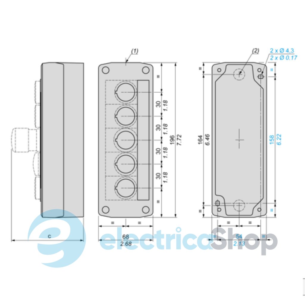 Пустой корпус Harmony XALD Schneider Electric, пластик, темно-серая крышка, для кнопки Ø22, 5 вырезов.