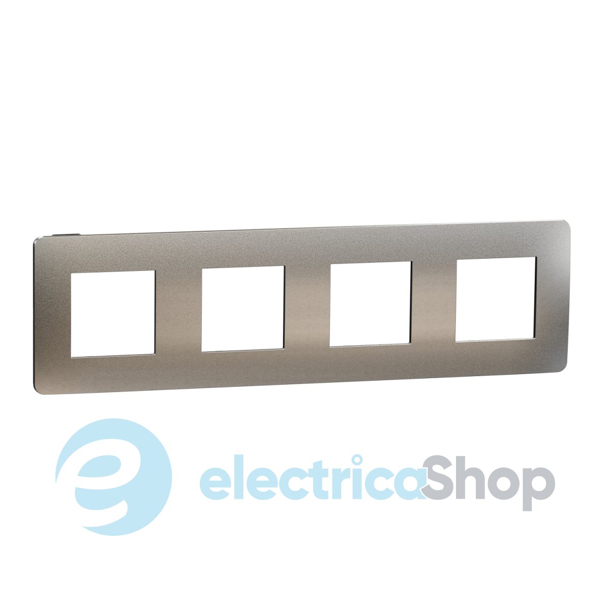 Установочная рамка на 4 места из линейки Studio Metal цвет матовый хром/антрацит. Коллекция Unica New (Schneider Electric).