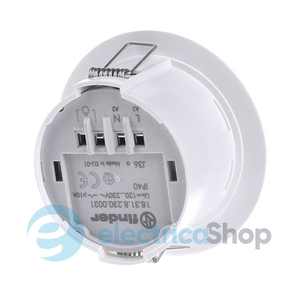 Пассивный инфракрасный детектор движения Finder 183182300031 применяется для потолочной установки.