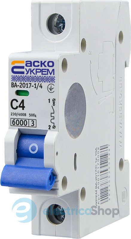Автоматический выключатель АСКО на 4 А (A0010170031) предназначен для оперативных коммуникаций и защиты низковольтных электрических кругов от продолжительных токовых перегрузок и токов короткого замыкания.