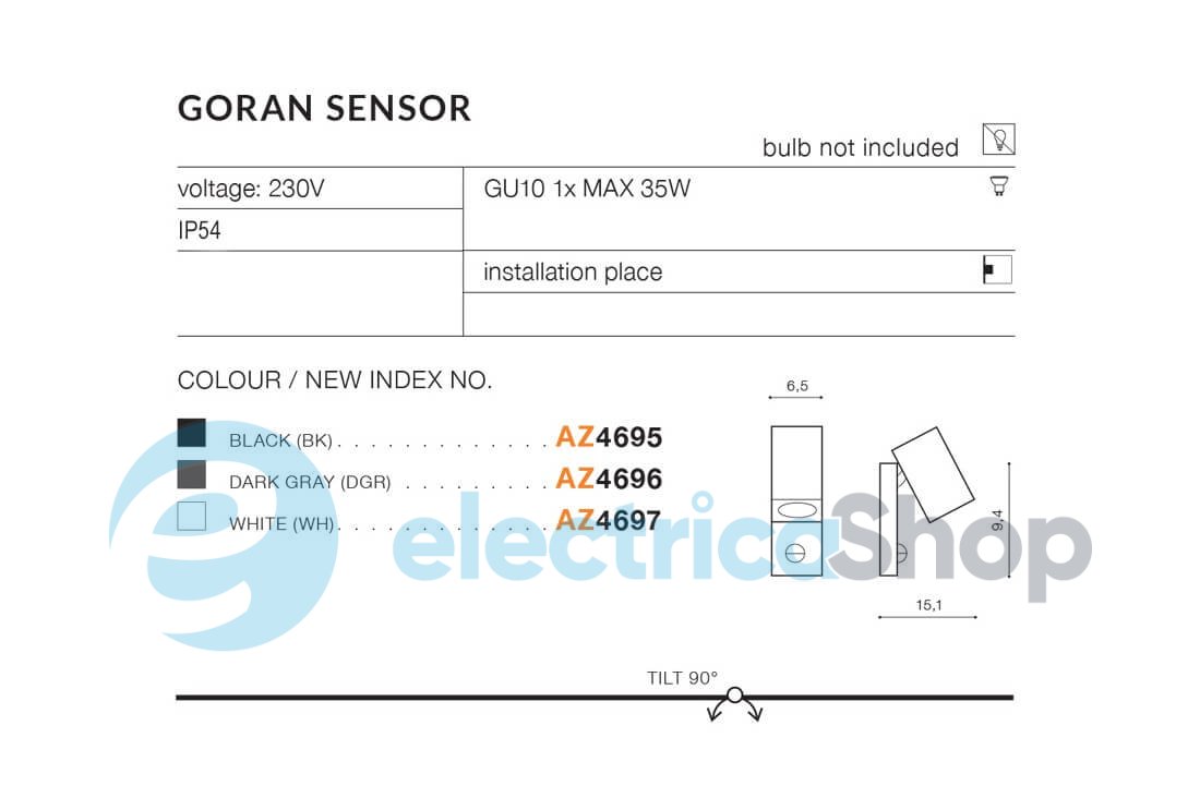Уличный светильник Azzardo GORAN SENSOR IP44 AZ4696 подходит для современных дизайнов и экстерьера. Светильник создан в минималистичном стиле, благодаря аккуратным формам и лаконичному исполнению станет хорошим дополнением для жилых и коммерческих помещений. Имеет встроенный датчик движения, особенностью которого является возможность параллельного подключения других светильников и их включения при срабатывании датчика (Master Slave System). Общая мощность подключаемых светильников не должна превышать 150W.