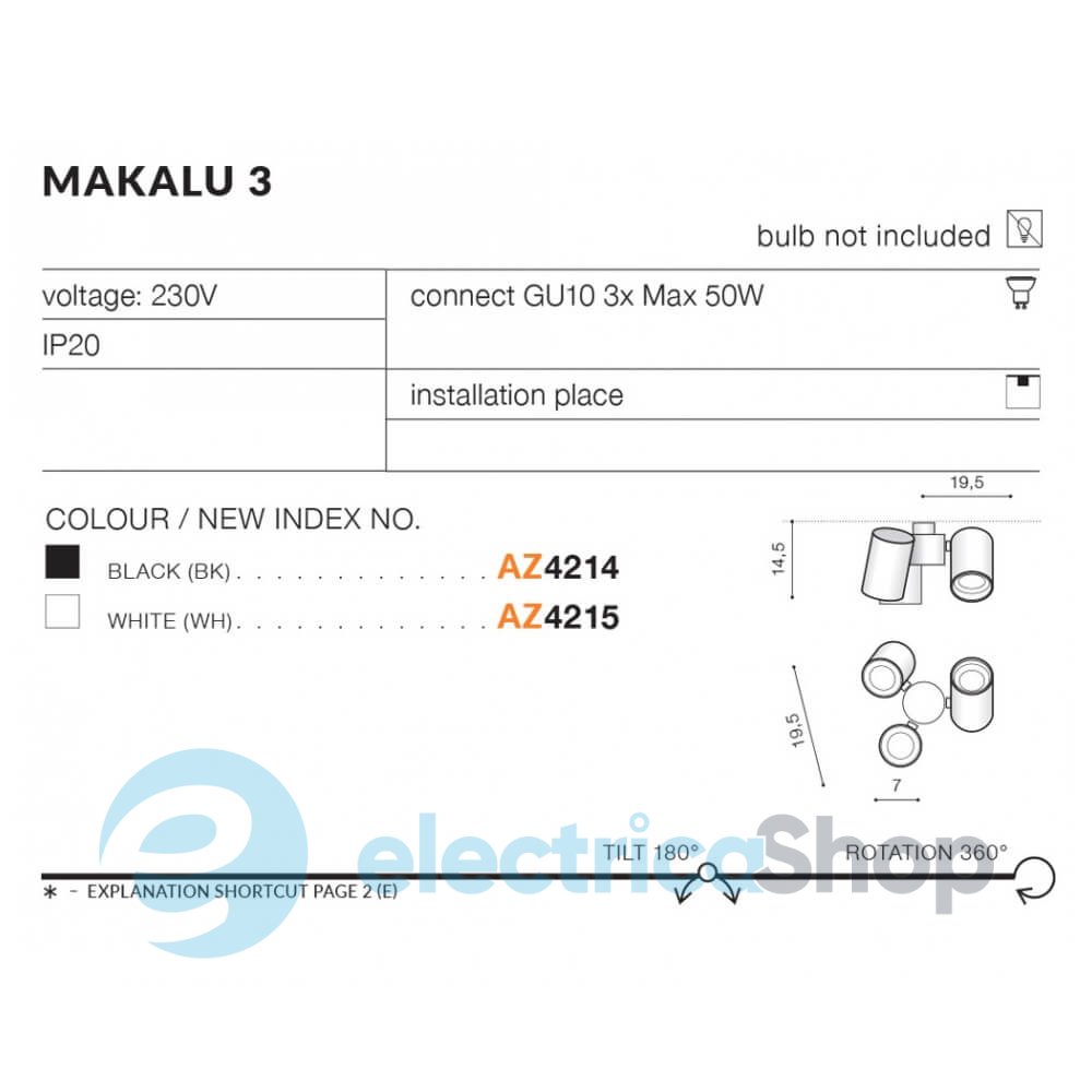 Светильник Azzardo MAKALU 3 AZ4214 подходит для современных дизайнов. Светильник создан в минималистичном стиле, благодаря аккуратным формам и лаконичному исполнению станет хорошим дополнением для жилых и коммерческих помещений. Угол рассеивания света – 180°.