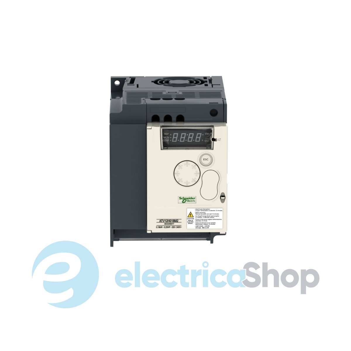 Преобразователь частоты ATV12H018M2 Altivar 12 предназначен для однофазных асинхронных двигателей с питанием от 200 - 240 В и мощностью до 0,18 кВт.