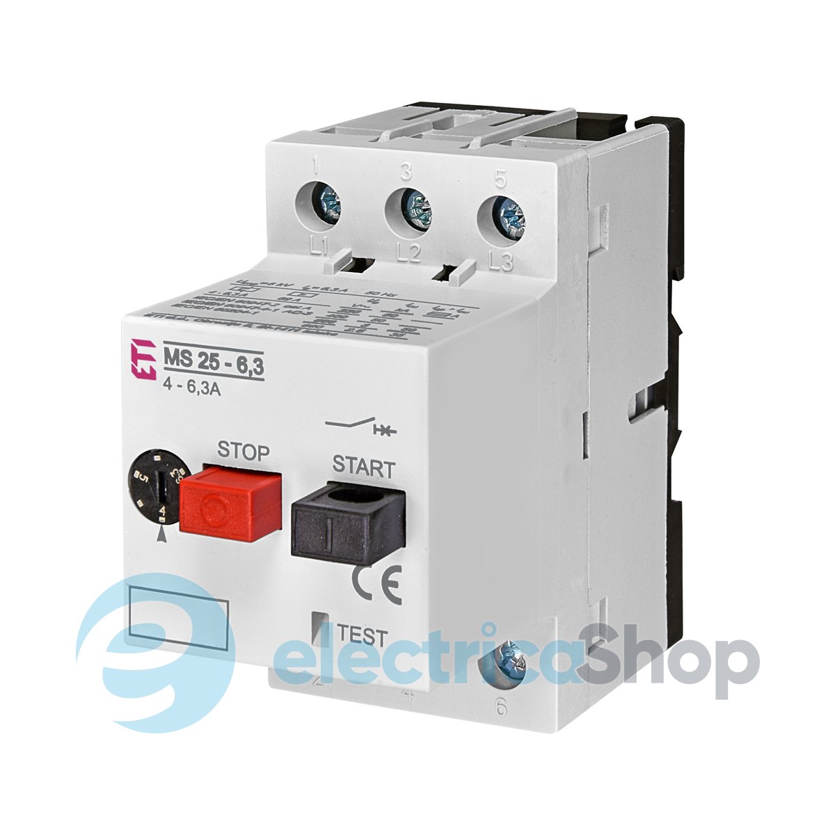 Автоматический выключатель Eti MS 25-6,3 (каталожный номер 4600090) предназначен для пуска и защиты электродвигателей небольшой мощности.
