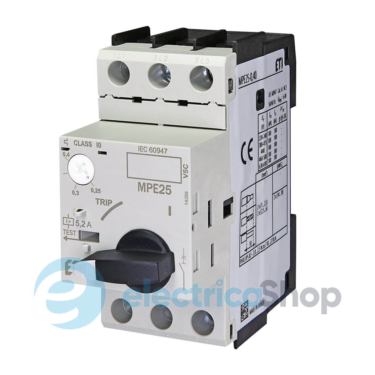 Автоматический выключатель Eti MPE 25-0,40 (каталожный номер 4648003) предназначен для пуска электродвигателей небольшой мощности и их защиты от перегрузок и коротких замыканий.