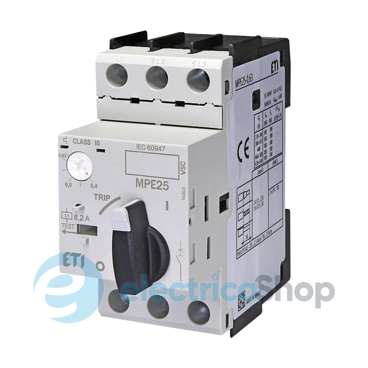 Автоматический выключатель Eti MPE 25-0,63 (каталожный номер 4648004) предназначен для пуска электродвигателей небольшой мощности и их защиты от перегрузок и коротких замыканий.
