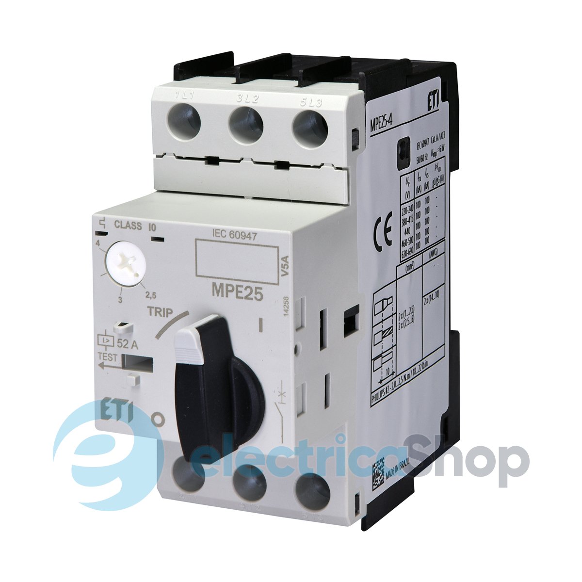 Автоматический выключатель Eti MPE 25-4,0 (каталожный номер 4648008) предназначен для пуска электродвигателей небольшой мощности и их защиты от перегрузок и коротких замыканий.