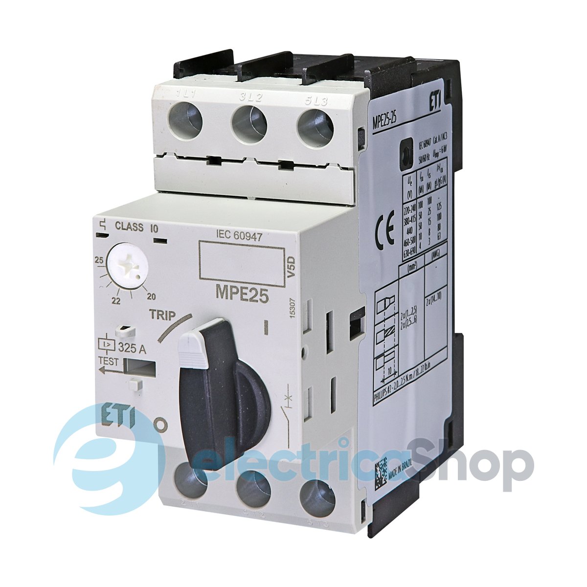 Автоматический выключатель Eti MPE 25-25 (каталожный номер 46480013) предназначен для пуска электродвигателей небольшой мощности и их защиты от перегрузок и коротких замыканий.