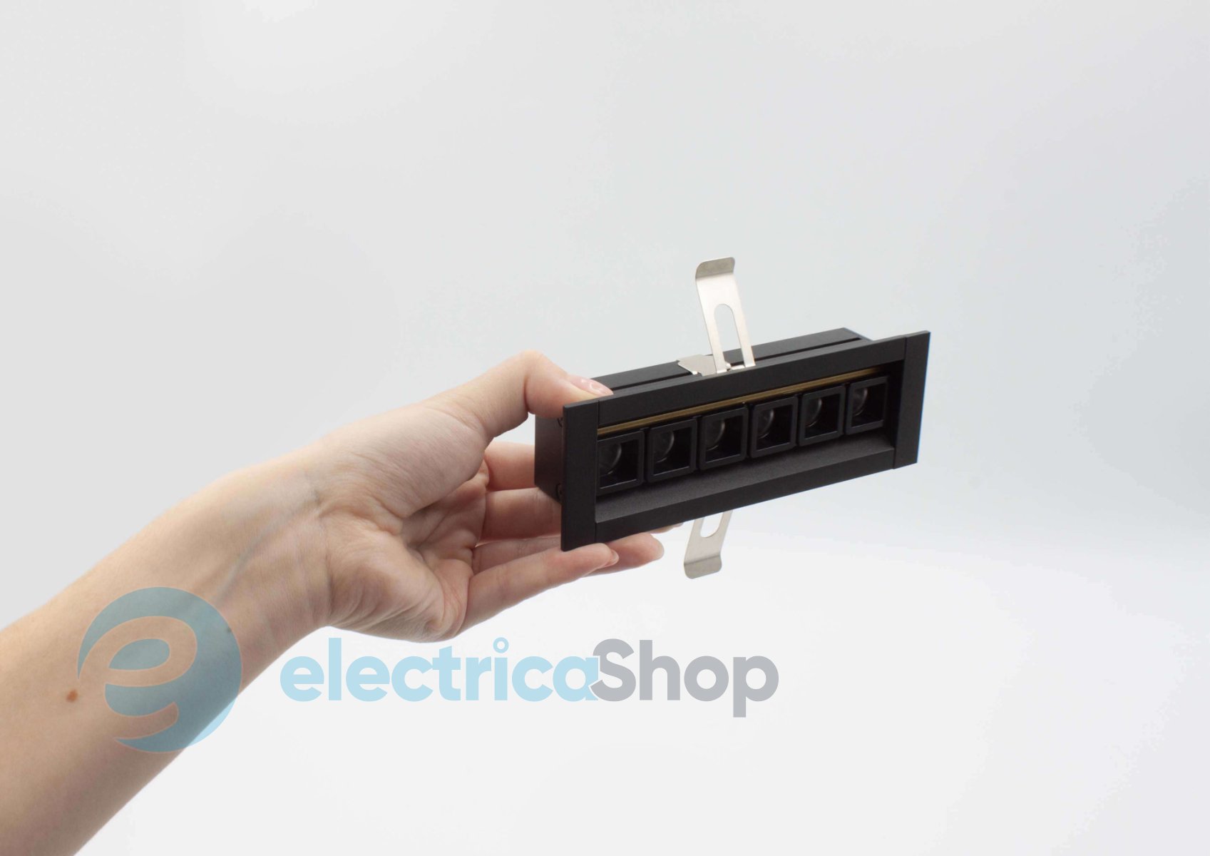 Точечный встраиваемый светильник Skarlat LISE RSL74165 6x2W BK+GD 3000K представлен тремя разными моделями: для создания направленного, рассеянного света и для освещения стен. Положение светильника по отношению к потолку можно отрегулировать легким нажатием на корпус. Установка такого изделия с декоративной рамкой выгодно скрывает все возможные неровности монтажа. Угол рассеивания света – 24°.