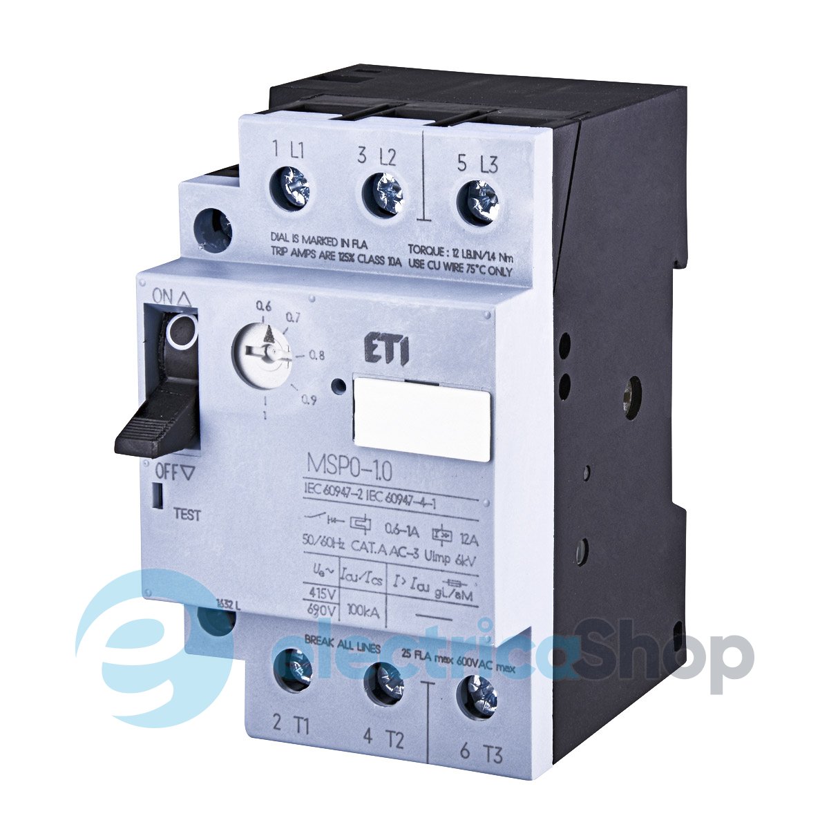 Автоматический выключатель защиты электродвигателя ETI MSP0-1,0 (код для заказа 4646619) предназначен для пуска электродвигателей до 0,25 kW и защиты его от токов коротких замыканий и перегрузок. Могут выполнять роль главного или аварийного выключателя. Предназначены для эксплуатации внутри помещений при нормальных условиях окружающей среды.