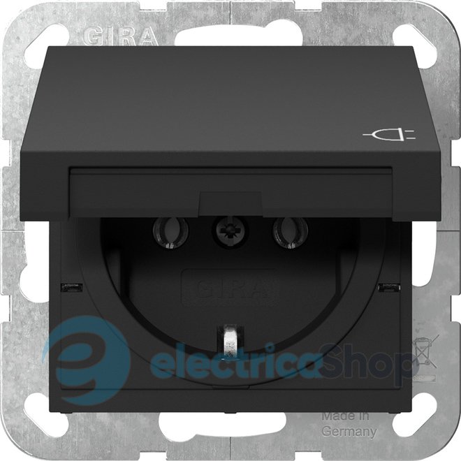 Розетка с з/к 16А/250V и крышкой, System 55 Gira 4454005, черный матовый