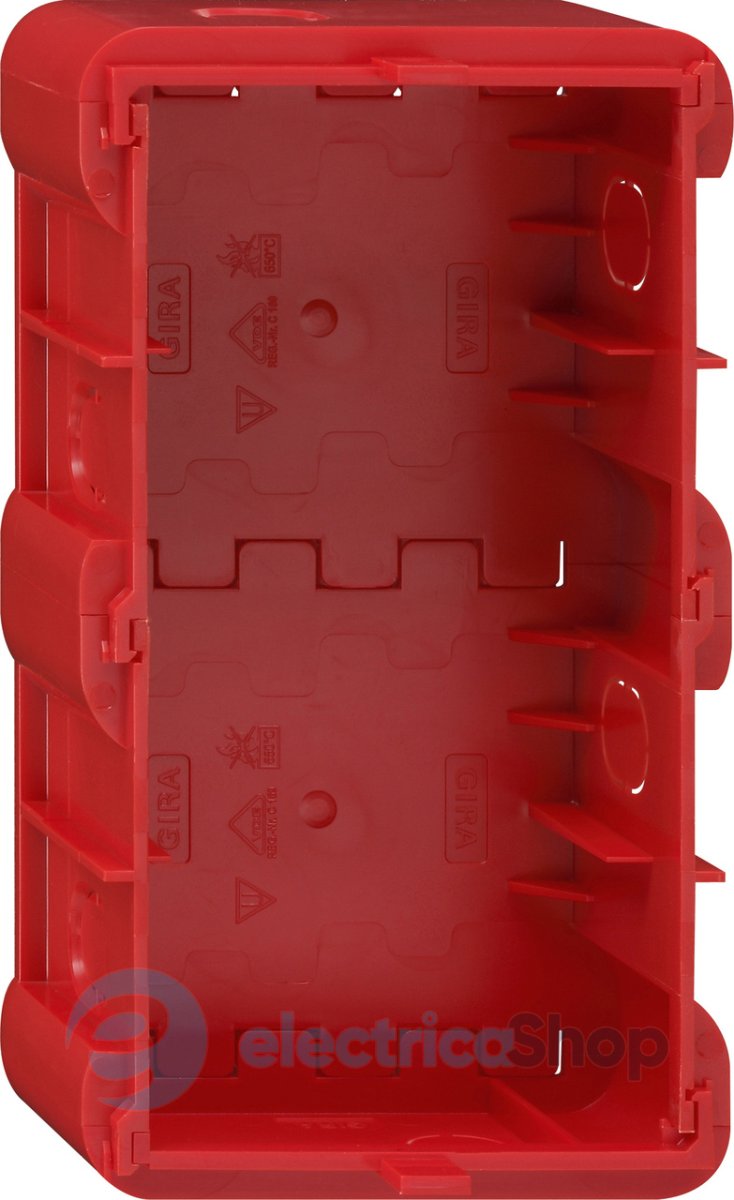 Приборная коробка Gira предназначена для монтажа заподлицо и позволяет устанавливать серию выключателей Gira E2 плоско на стену.
