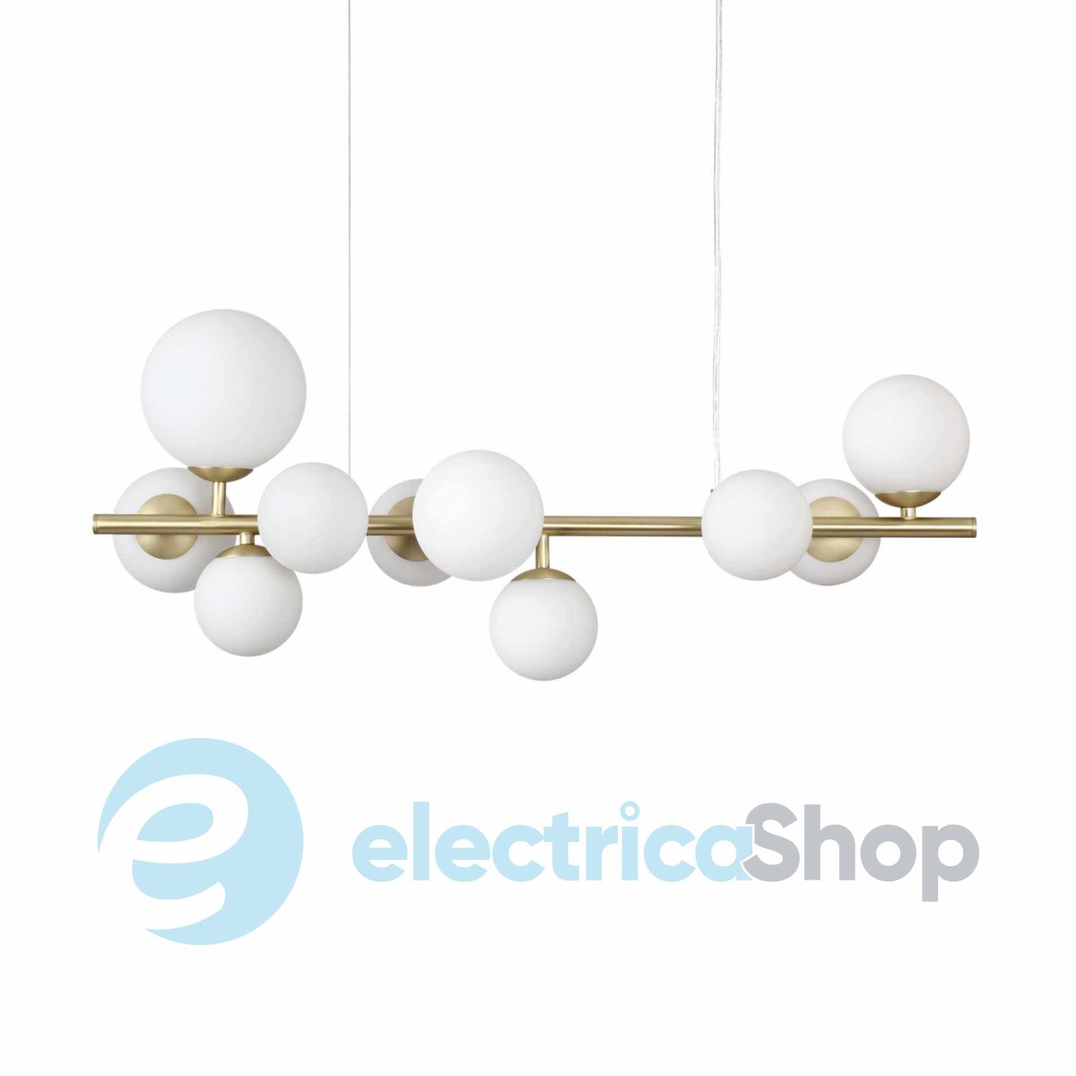 Люстра Ideal Lux PERLAGE SP10 283791 будет отлично смотреться в современных интерьерах, создаст красивые акценты. Арматура изготовлена из металла, плафоны – из опалового стекла, тросы стальные.