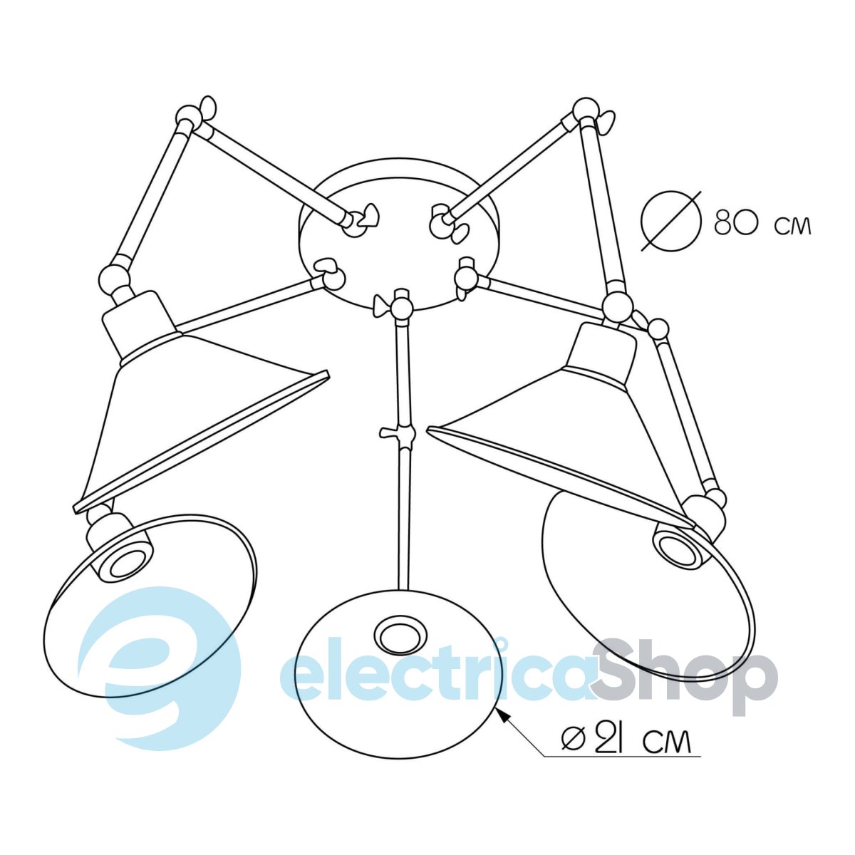 Люстра-паук ImperiumLight Mechanic 433580.08.08 станет отличным решением для современных интерьеров. Аккуратные формы и оригинальный дизайн впишутся в оформление жилых помещений, офисов, ресторанов. Имеет поворотные плафоны. Диаметр плафона – 21 см.