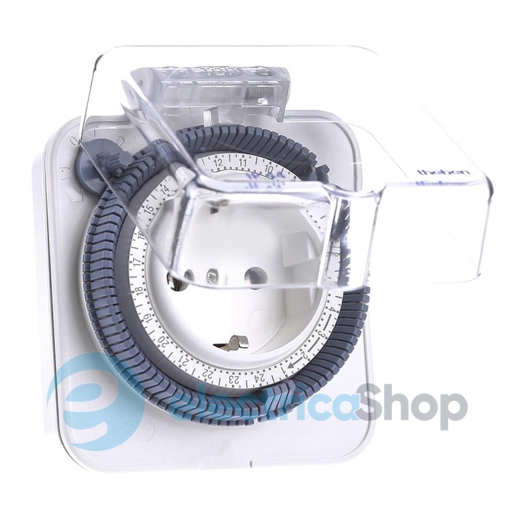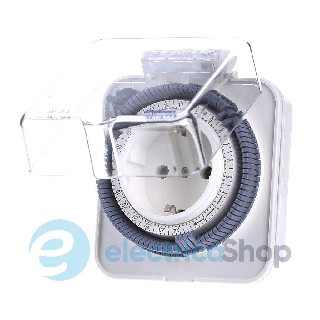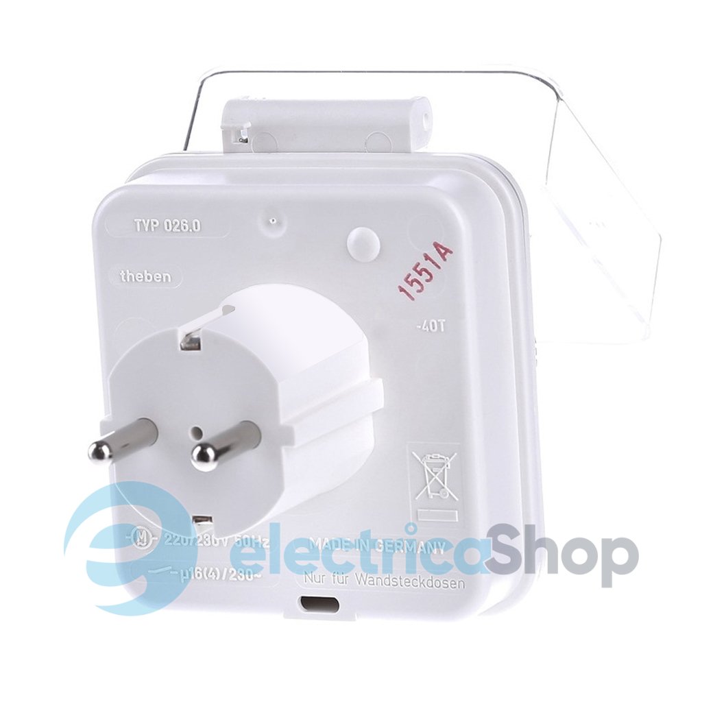 – Электромеханический розеточный таймер Theben — Timer 26 (розетка-таймер), с суточной программой.